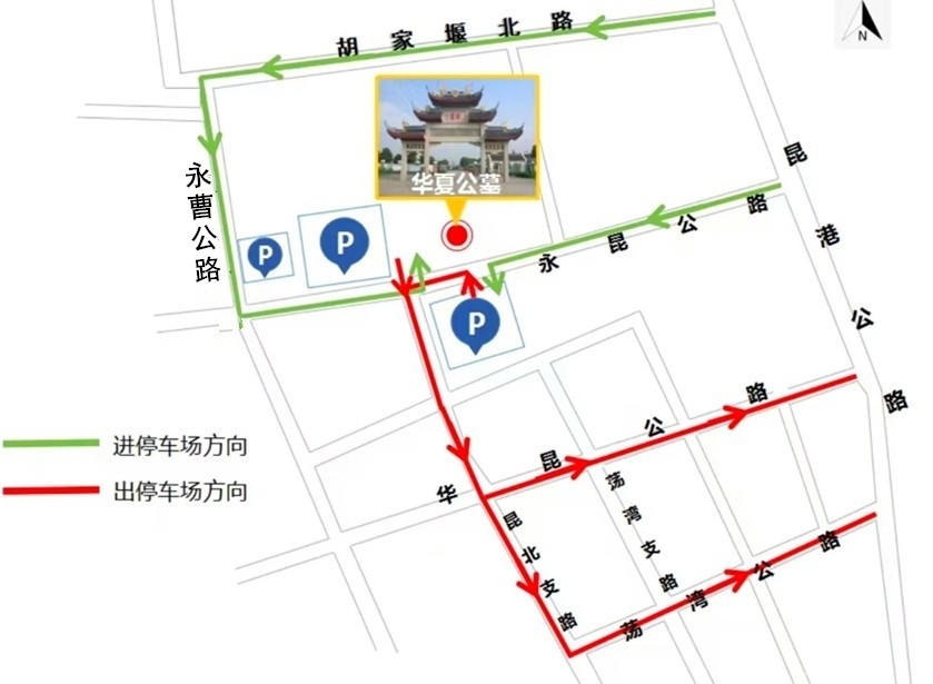 华夏公墓→9号线松江大学城站候车点:华夏公墓停车场短驳点。